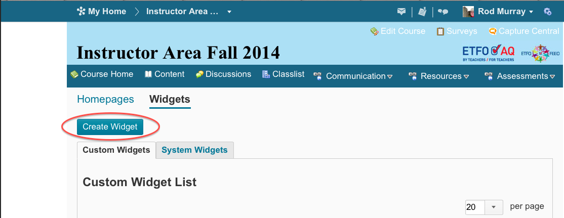 5) Click on Create Widget and give your new Widget an appropriate name e.g. #etfoaq Twitter Feed