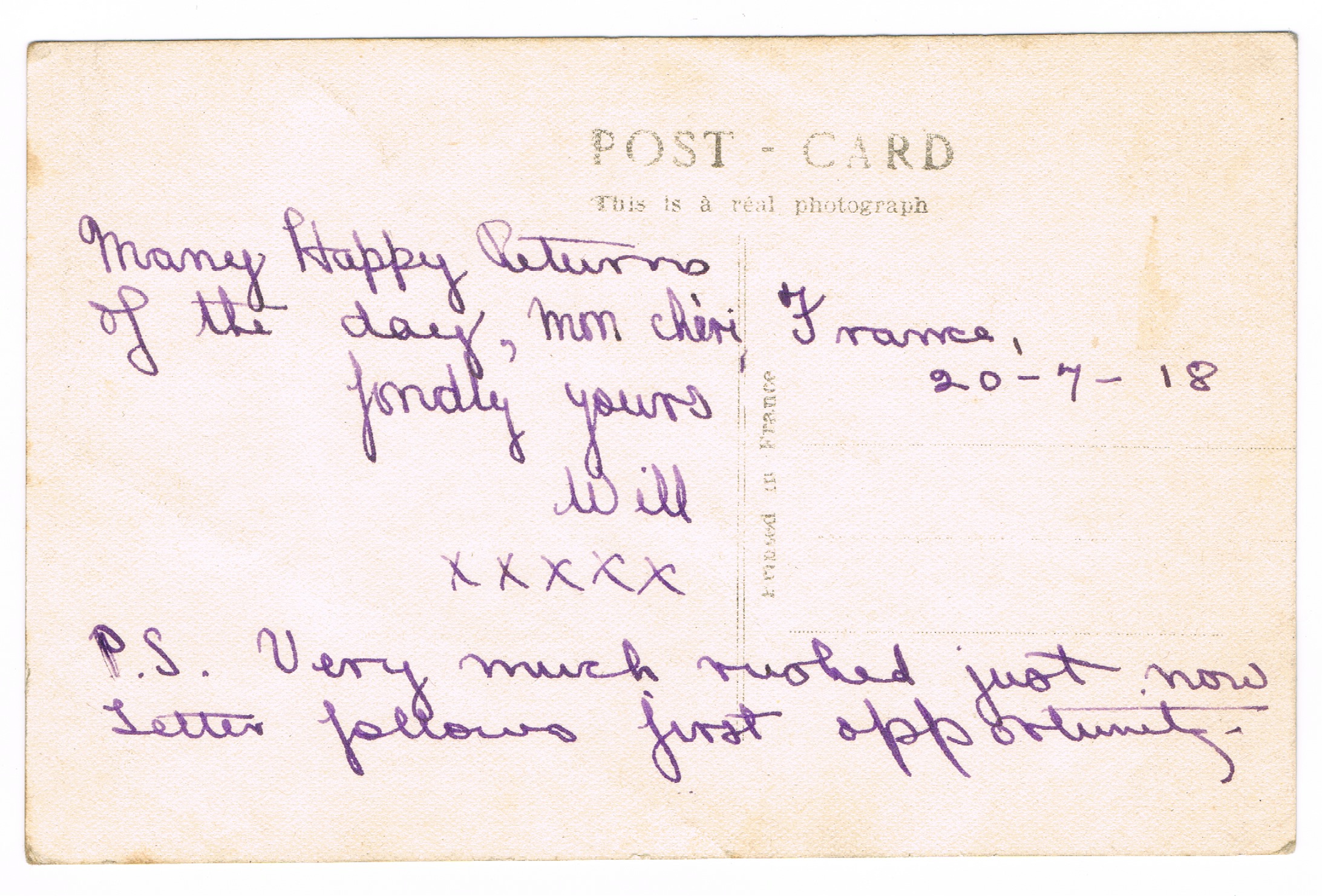 Here is the birthday card that Will sent to Gladys in July of 1918.